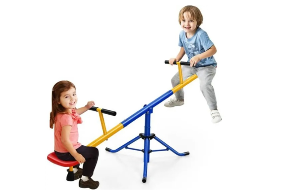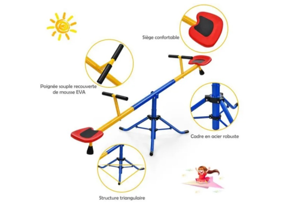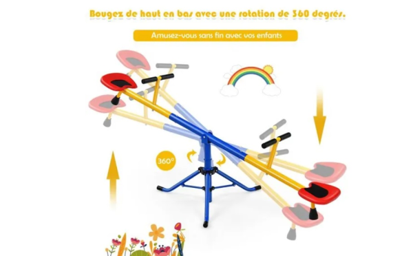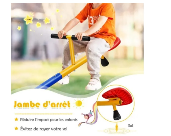 COSTWAY Balançoire à Bascule Tapecul pour Enfant Pivotante à 360° avec Pieds d’Arrêt Jouet d’Extérieur pour Jardin 3 – 8 ans